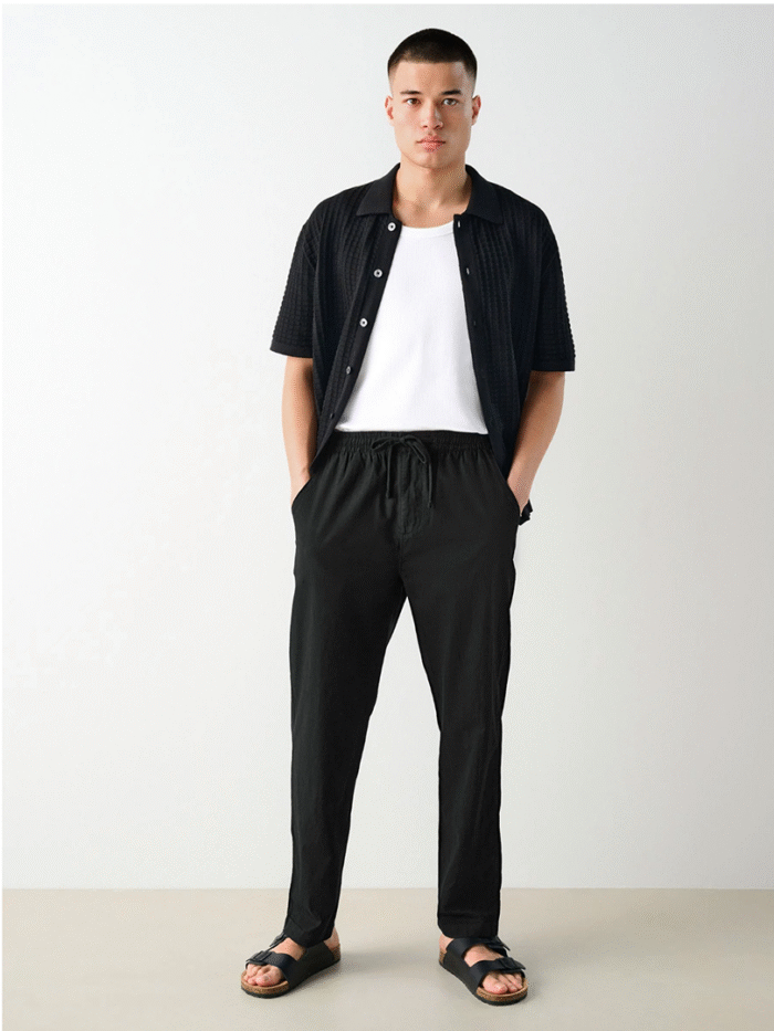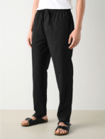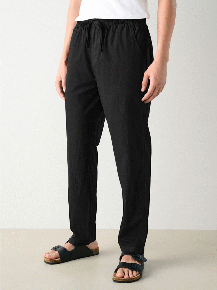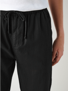 Stay comfortably chic with Midnight Black Linen Drawstring Pants—your ultimate versatile wardrobe essential.
