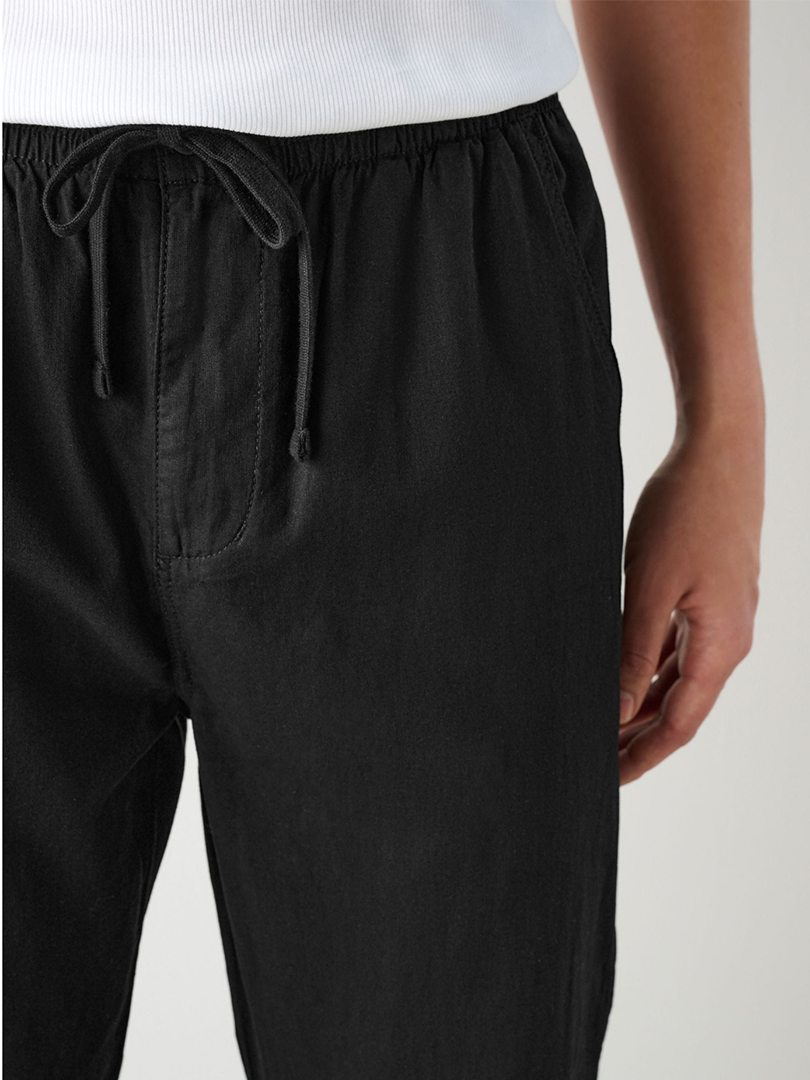 Midnight Black Linen Drawstring Pants