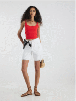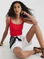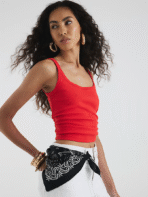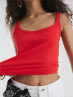 Eye-catching vibrant red tank top for bold and confident casual styling.